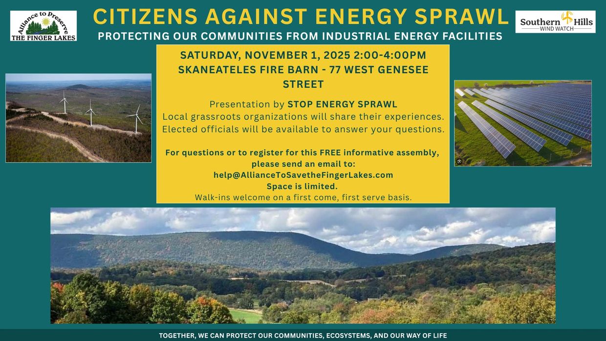 October 24, 2025 — Alliance to Preserve the Finger Lakes and Southern Hills Wind Watch, Skaneateles, NY